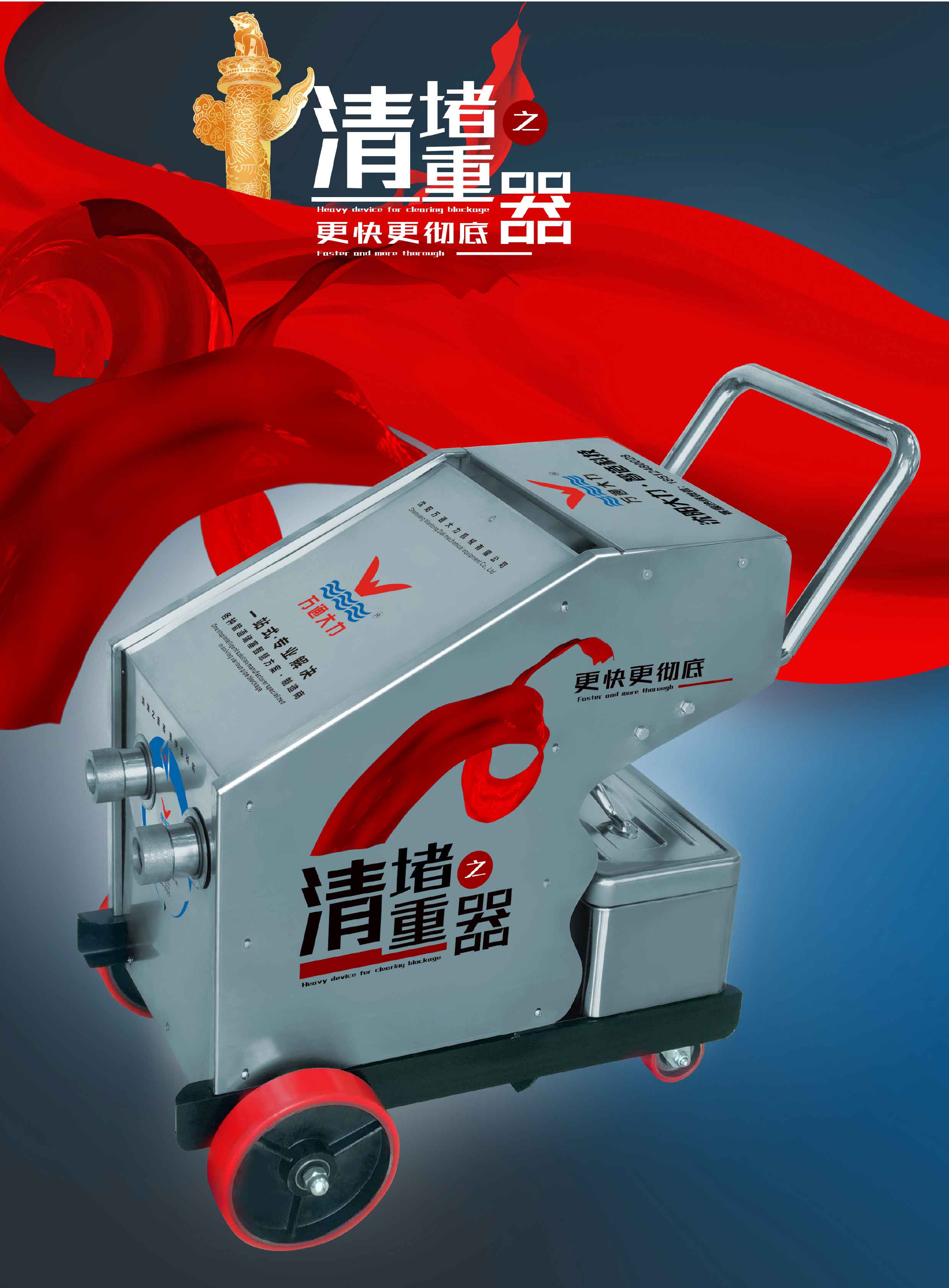 沈陽萬通大力機械有限公司是智能數碼地熱清洗機、新型快速動汽清洗機、管道疏通機,高壓清洗機、管道清洗機,鍋爐洗管機 中央空調清洗機,高壓水射流清洗機。冷凝器清洗機、空氣預熱器清洗機、大型市政管道疏通車和試壓泵的設計、制造和銷售的專業型企 業。